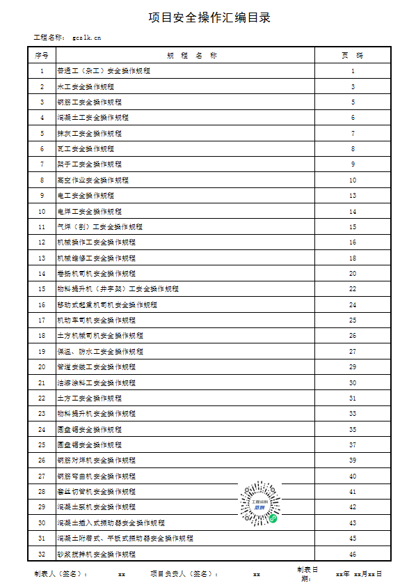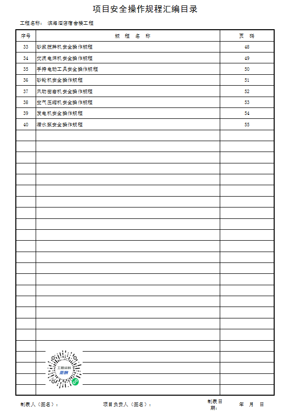 项目安全操作规程汇编目录  (使用项目安全管理制度汇编目录表格改篇而来进行规程的汇编整理)