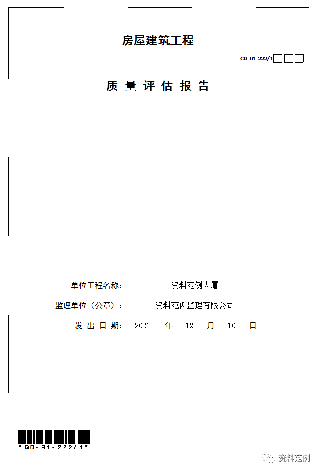 工程完工后,由监理单位填写提供,是工程竣工验收文件的一部分。质量评估报告这份重要的技术文件,不仅是建筑工程质量的反映,而且也是监理单位、监理工程师监理水平的一种直观展示。